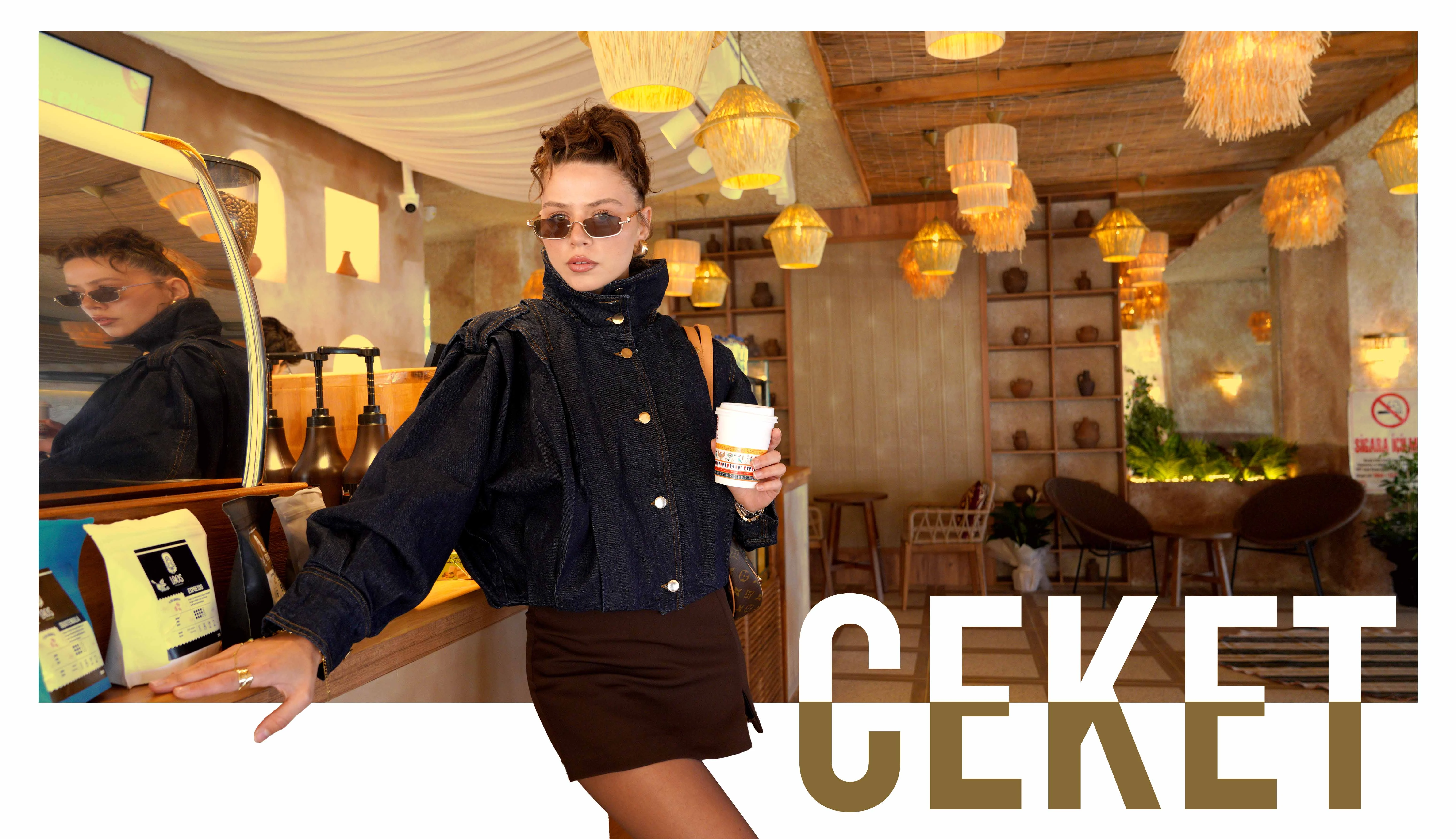 Bej Kol Detaylı Atlas Ceket, Siyah Şort Etek