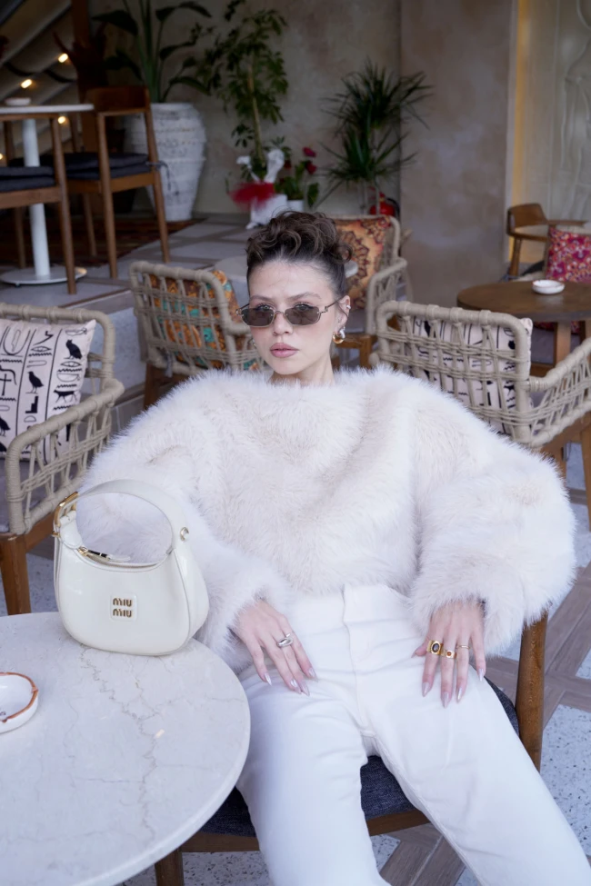 Bej Kürk Crop Sweat, Bej Orj Marka Kesik Paça Palazzo Jean