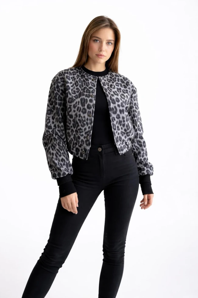 Gri Leopar Kaşe Ceket
