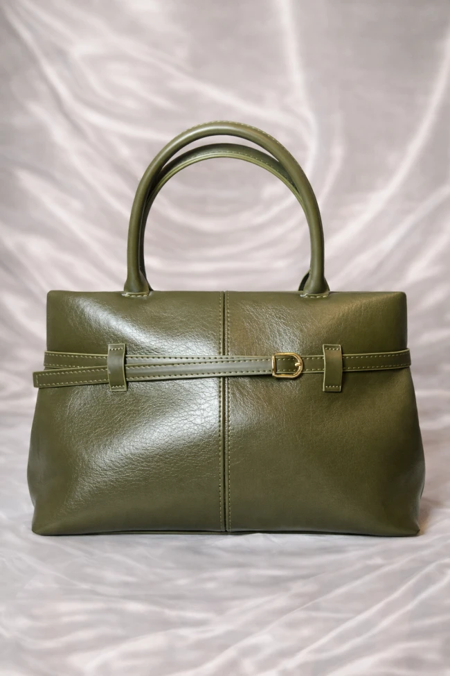 Haki Deri Kemer Detaylı El ve Omuz Çantası