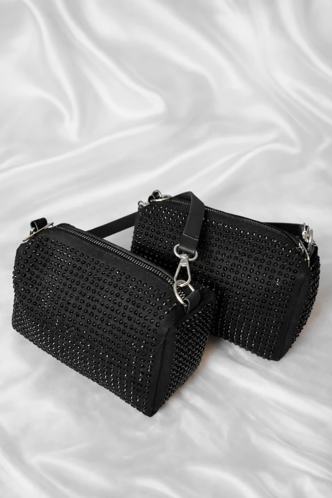 Siyah Taşlı Çift Askılı El ve Omuz Çantası