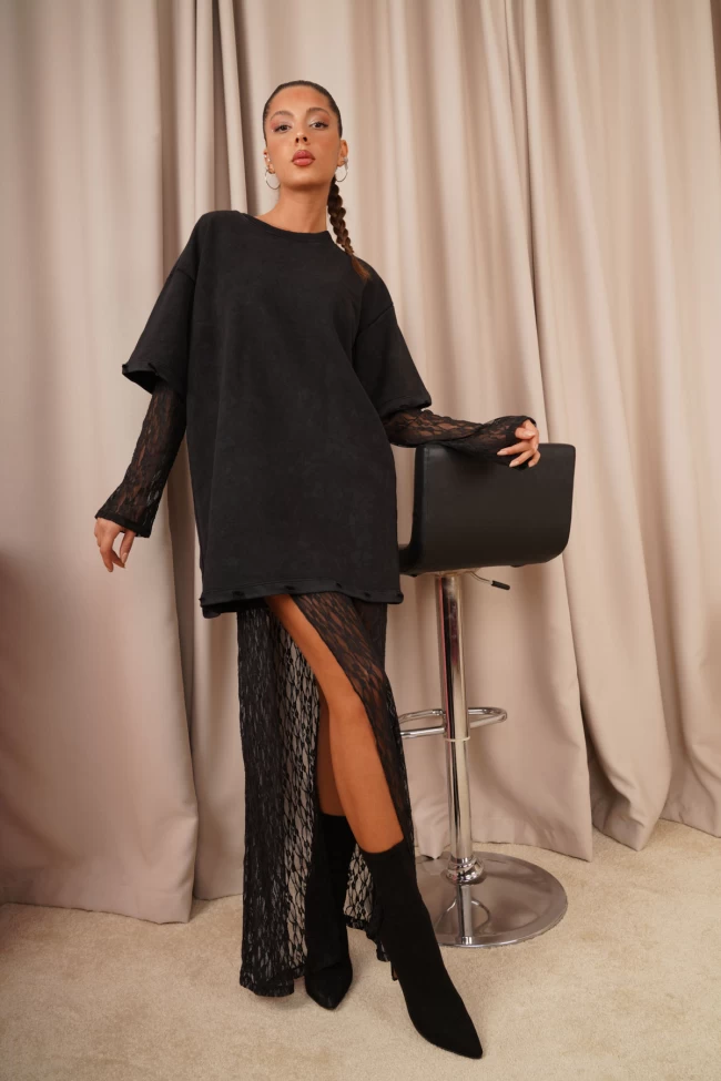 T-shirt ve dantel elbise birleşik üretilmemiştir.